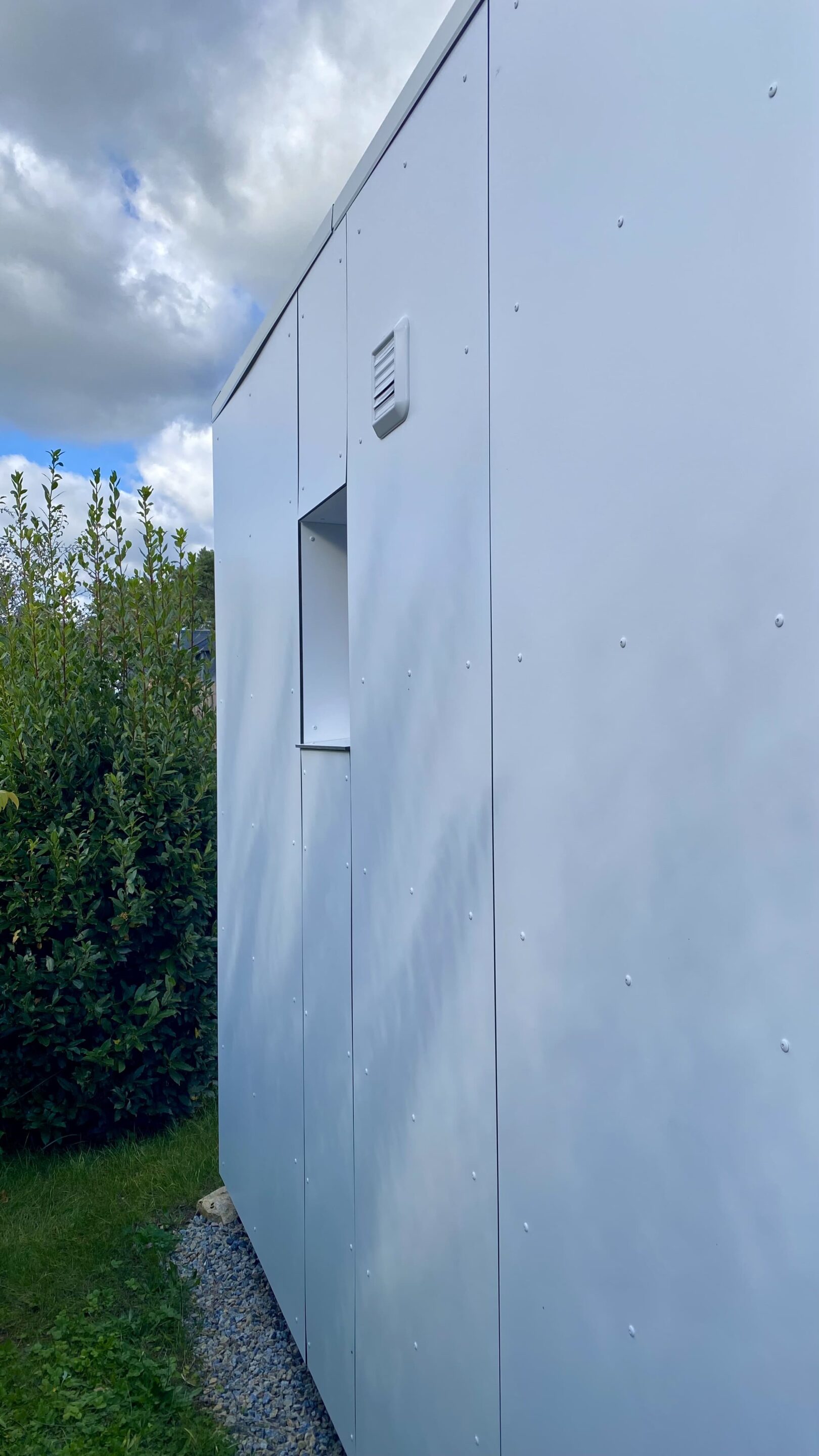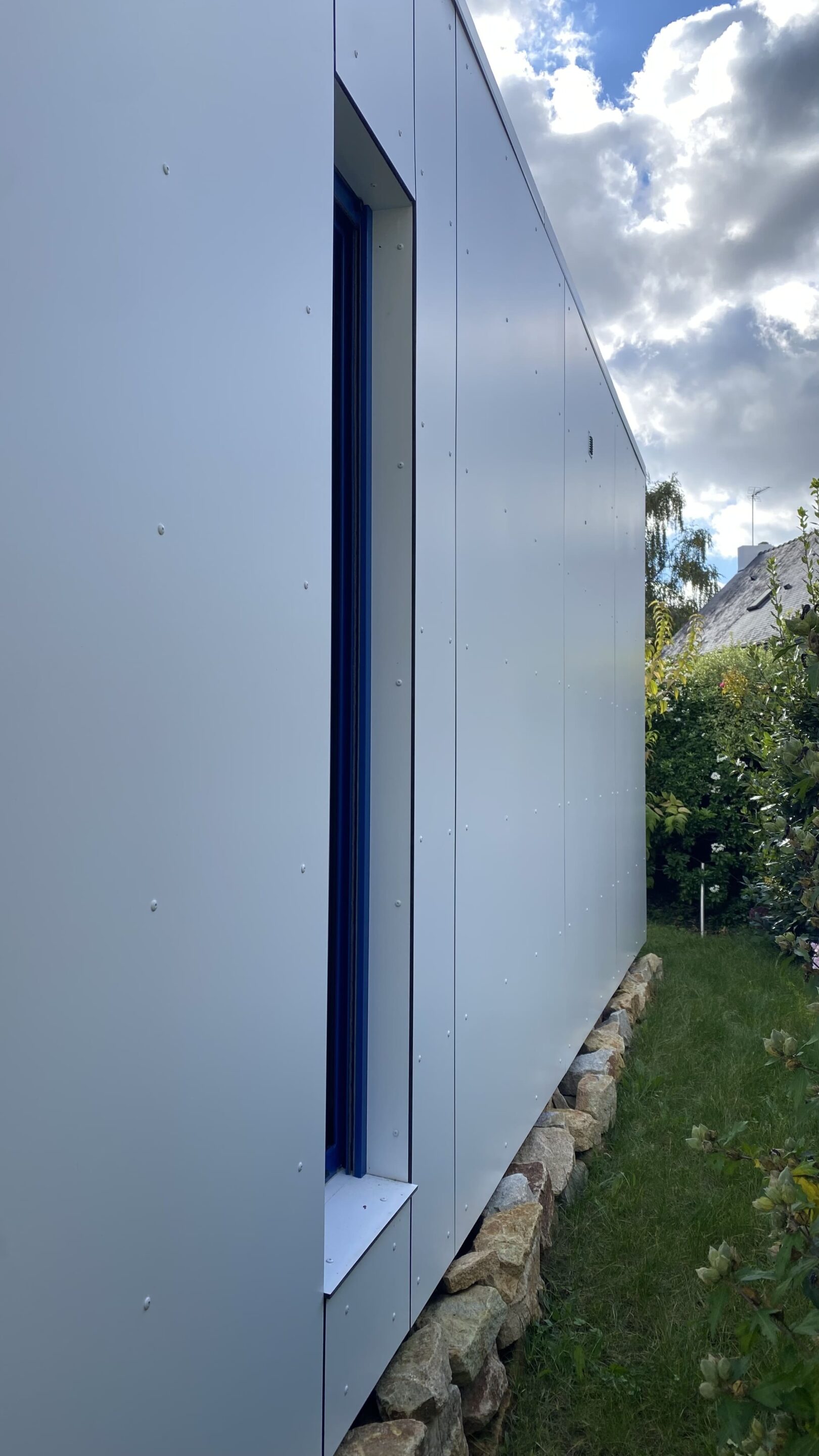 Bardage Trespa, aucun entretien, installé en 1 jour, une vraie pièce de vie lumineuse, qui agrandit la maison naturellement.