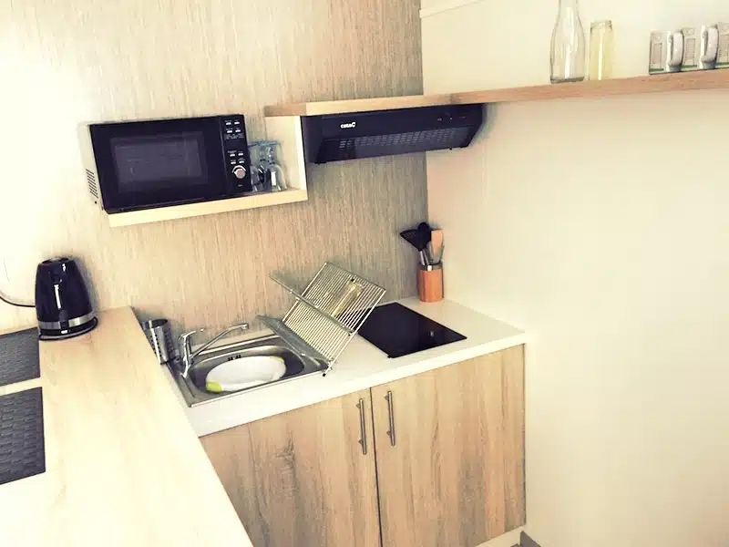 Le studio est tout équipé : salon-chambre / cuisine et salle de bains. Le tout pour une parfaite indépendance.
