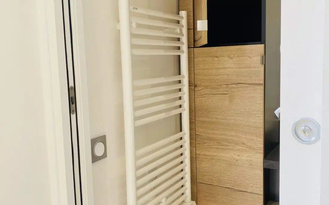 L’aspect bois était important pour se marier harmonieusement à l’environnement de travail de notre cliente et ajouter un côté apaisant à son institut.